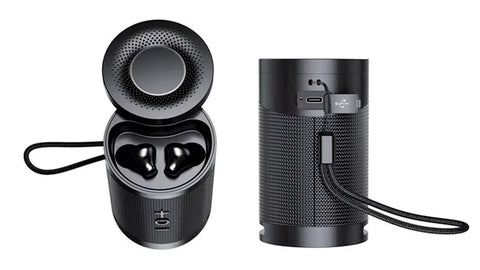 The speaker boasts exceptional sound quality and a compact design that makes it easy to carry, while the TWS earphones deliver crystal-clear sound without the hassle of cords. With Bluetooth connectivity, you can pair the 2-in-1 Wireless Audio Solution Pro with any compatible device, such as your smartphone, tablet, or laptop. The long-lasting battery life ensures you can enjoy your music all day. Whether you're at home, in the office, or on the go, this pro-level audio solution is the perfect choice for all your listening needs."